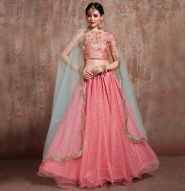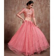 Sensational Pink Colored Partywear Embroidered Soft Net Lehenga Choli