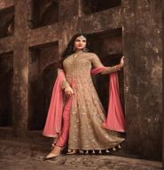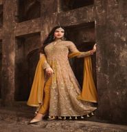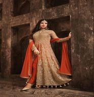 ORANGE EMBROIDERED NET ANARKALI SUITS SEMI STITCHED
