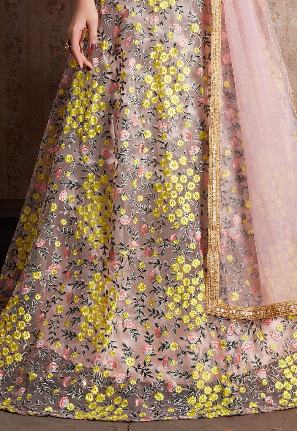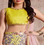 Available with an Unstitched Art Silk Choli in Yellow, Crafted in Round Neck and Sleeveless and a Net Dupatta in Light Pink. The Choli Length is 14 to 15 inches and Sleeve length is 1 to 5 inches