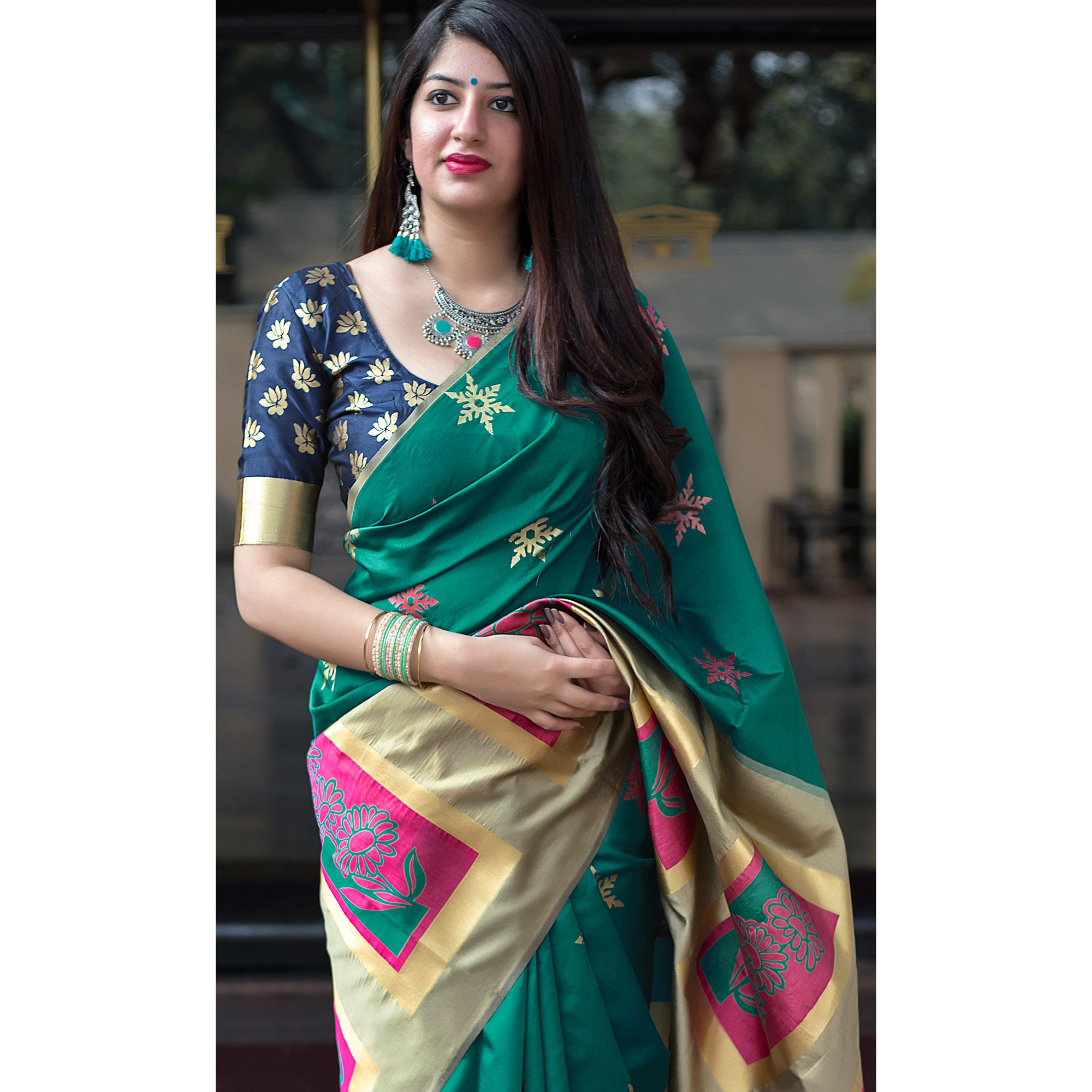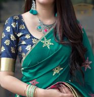 Aheli Saree With Blouse Piece (No-6/6.25_Dark Blue And Gold)