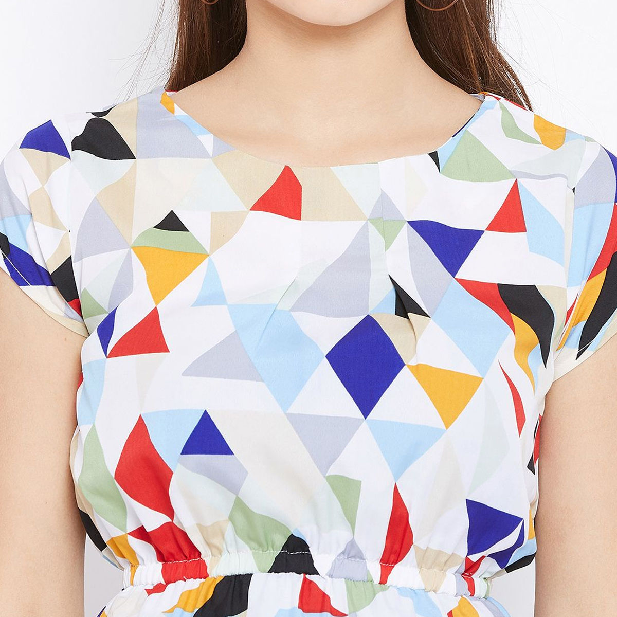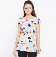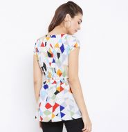 Showcasing an attractive spread of beauty in this white-multi colored top. This top is fashioned on crepe fabric which is lightweight and assures the wearer a perfect fit & comfort. This stitched top beautified with geometric print work as shown. Ideal for casual wear, outing & weekend get together. Pair it up with jeggings or jeans to create a contrasting effect, along with heels & stylish accessories and you are good to go. This attractive top will surely fetch you compliments for your rich sense of style. Note:- The actual product may differ slightly in color and design from the one illustrated in the images when compared with computer or mobile screen.