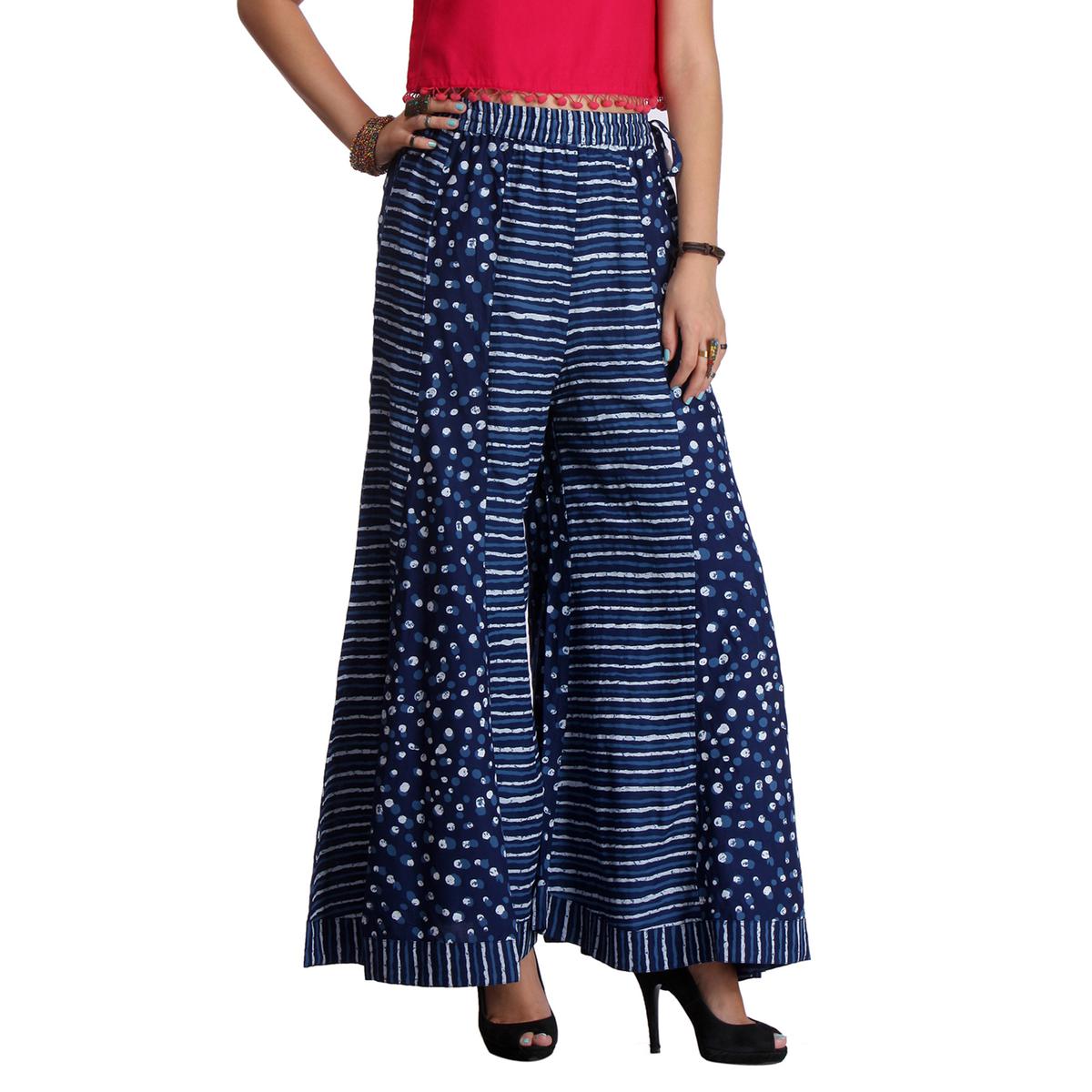For urbane women who love to flaunt something unique and stylish, People offers this blue colored printed palazzo. This pair of palazzo has been designed keeping the latest trend in mind. Crafted from rayon which is decorated with allover print that will make you feel comfy all through the day. Ideal for a casual day out with friends, weekend get-together, office wear, kitty parties.These regular-fit palazzo are stitched to perfection and will give you a smart look when teamed with contrast top or kurti along with belly, flats or heels for a trendy look, you can also accessorize with a handbag and a pair of danglers.