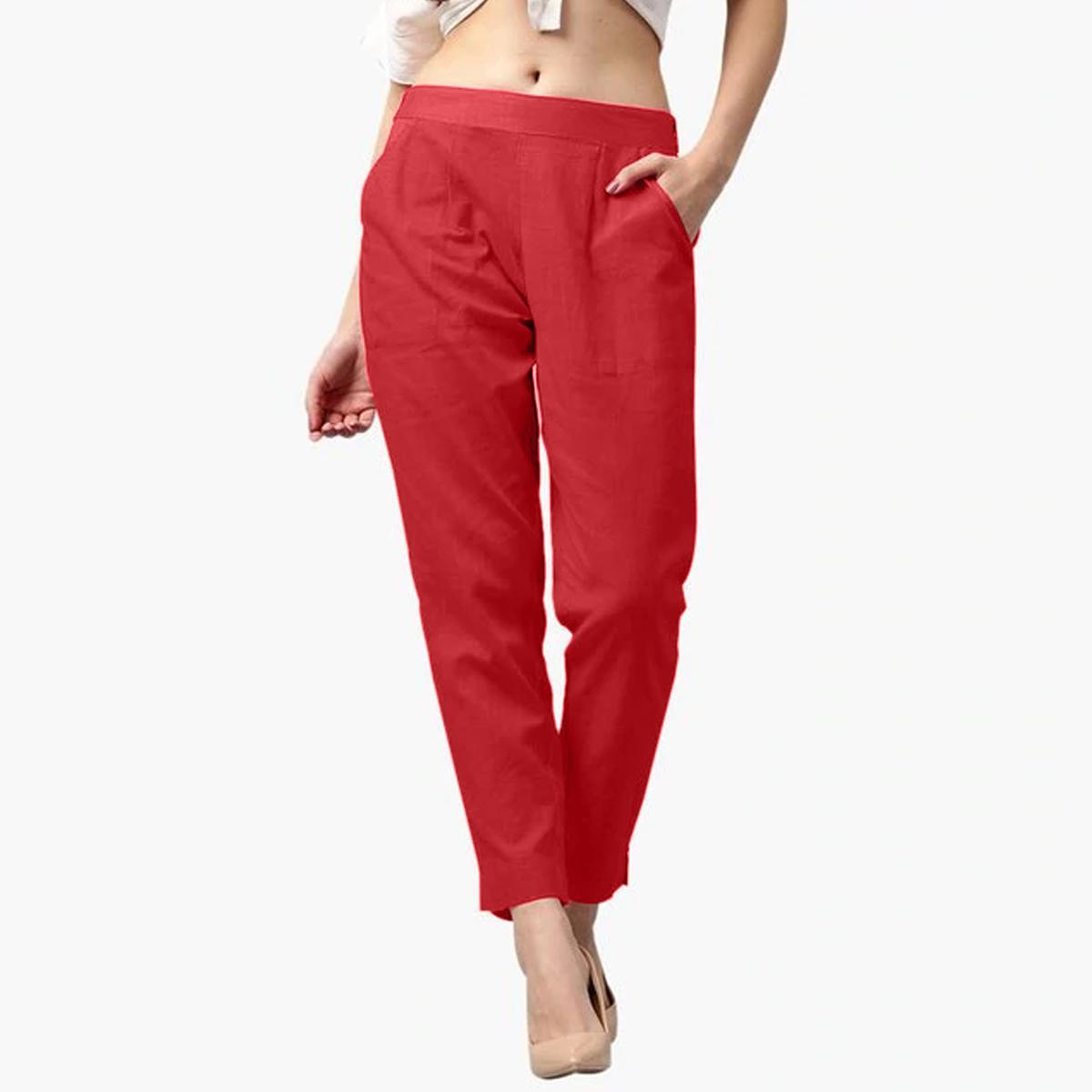 Be the center of attraction with this impressive red color pant. This pant is made of cotton (stretchable), and this will stay extremely soft again...