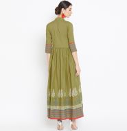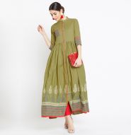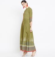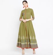Get this amazing saree and look pretty like never before. Wearing this green colored kurti. This kurti is fashioned on cotton fabric which is lightweight and assures the wearer a perfect fit & comfort. This stitched kurti pis beautified with 3/4 sleeve cotton ankle length A-Line kurta , mandrain collar neck as shown. Ideal for parties, event, outing & weekend get together. Team it with high heels and fashionable accessories to look more attractive. This attractive kurti will surely fetch you compliments for your rich sense of style. Note:- The actual product may differ slightly in color and design from the one illustrated in the images when compared with computer or mobile screen.