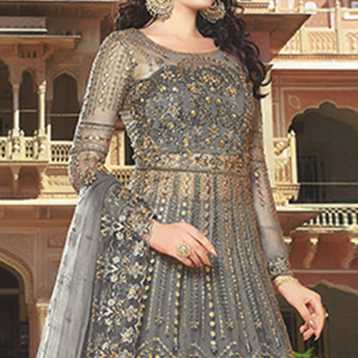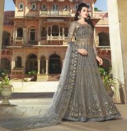 True beauty will come out of your dressing design with this captivating grey colored anarkali suit. This beautiful suit is prettified with heavy embroidered work which makes it appear classy. The top is made of super net fabric accompanied with attached lining, unstitched 2 art silk bottom along with embroidered super netted dupatta. Get this suit stitched into a churidar, palazzo, or lehenga style suit and flaunt your stylish look. Women can buy this designer suit to wear for their upcoming functions, festivals, wedding functions or engagement ceremonies and occasions, where you want to be center of attraction. This attractive suit will surely fetch you compliments for your rich sense of style. Team it with stylish accessories to make your looks more beautiful. Note:- The actual product may differ slightly in color and design from the one illustrated in the images when compared with computer or mobile screen.