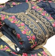 Unwind your bottled up beauty in this grey colored dress material. The beautiful suit uniquely crafted with lovely handwork which makes this dress perfect for a woman. This modal partywear suit comes along with unstitched santoon bottom and lining with chiffon dupatta. Women can buy this suit to wear for their upcoming homely functions, parties, kitties, weekend get together. Get this unstitched suit stitched into churidar or salwar suit according to your fit and comfort. Team it with stylish accessories to make your looks more beautiful. Note:- The actual product may differ slightly in color and design from the one illustrated in the images when compared with computer or mobile screen.