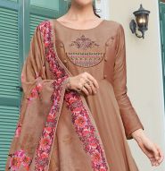 Flattering Brown Colored Partywear Embroidered Silk Anarkali Suit