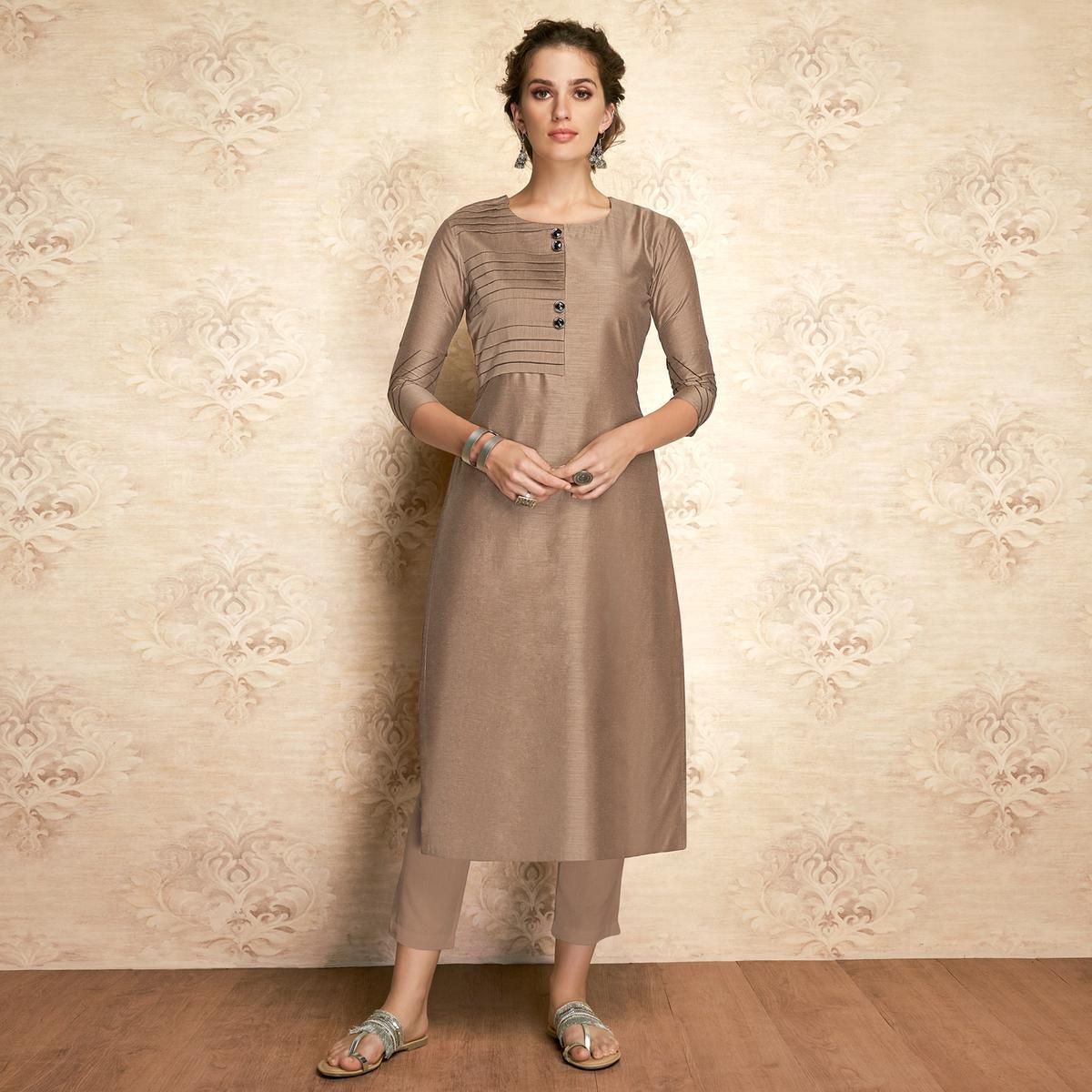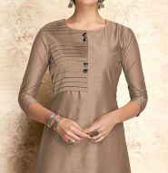 Get noticed for your casual look when you appear in this arresting brown colored kurti. This kurti is fashioned on pure viscose two tone silk fabric and it is attached with malai crepe lining which is lightweight and assures the wearer a perfect fit & comfort. This stitched kurti is beautified with thread embroidered work as shown. Ideal for parties, event, outing & weekend get together. Team it with high heels and fashionable accessories to look more attractive. This attractive kurti set will surely fetch you compliments for your rich sense of style. Note:- The actual product may differ slightly in color and design from the one illustrated in the images when compared with computer or mobile screen.
