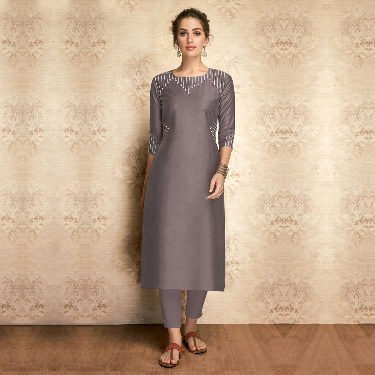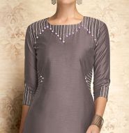 Opulent Grey Colored Partywear Embroidered Viscose Kurti