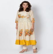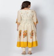 The Beige Long Anarkali Salwar Kameez Suit is based on Georgette fabric. The Suit comes with heavy embroidered yoke with glittering florals and stone work. The yoke has floral embroidered belt. The sleeves has motif patch design with