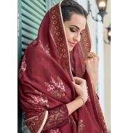 Make the heads turn when you dress up this unique maroon colored soft silk floor length anarkali suit. The brilliant stitched suit creates a dramat... view more