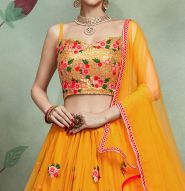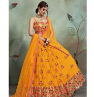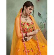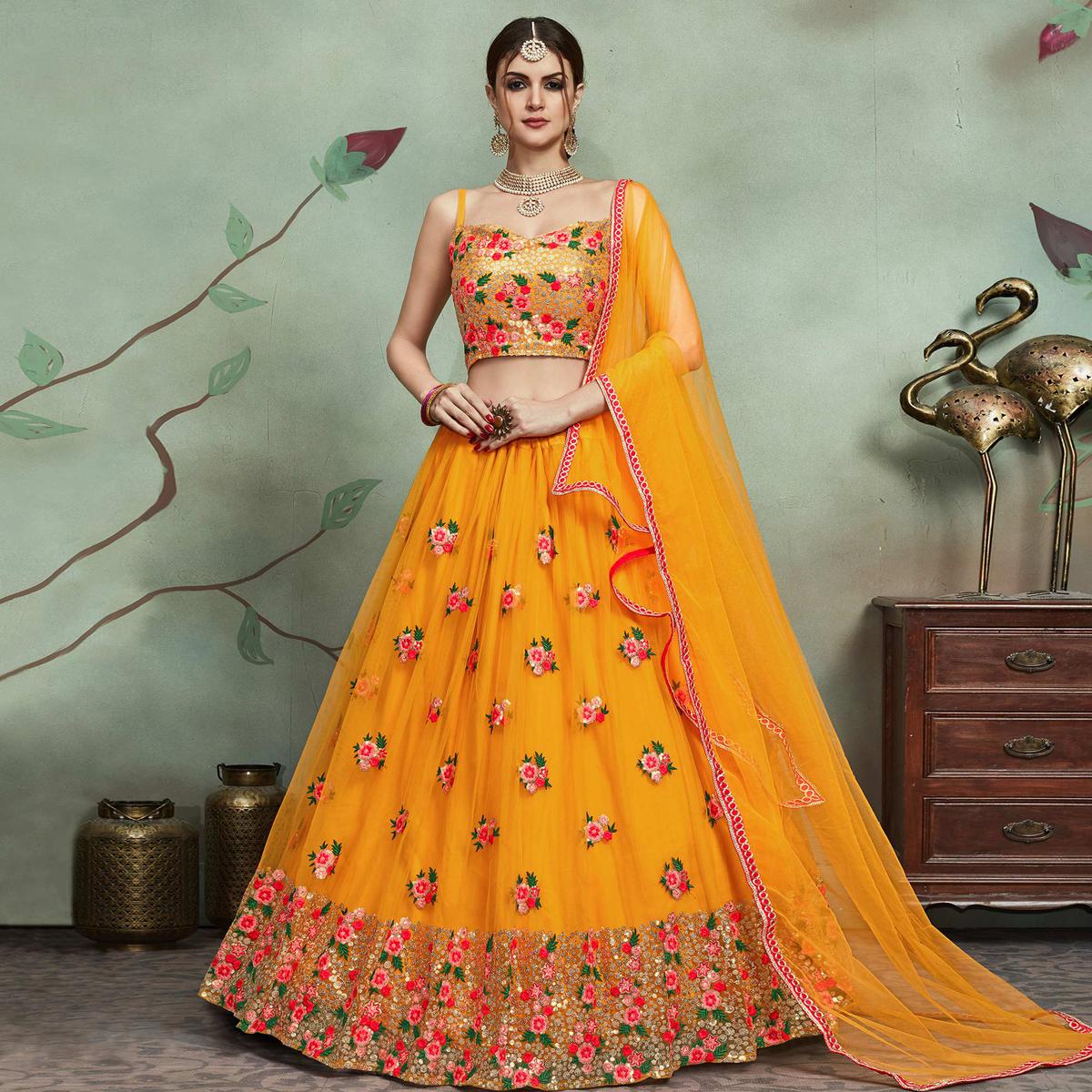 Ravishing attire to enhance your beauty. Be your own style icon with elegant in this demanding mustard yellow colored lehenga choli. The lehenga is made of soft netted fabric, comes along with soft netted blouse, satin lining and soft netted dupatta that enhances the attire. The semi-stitched lehenga choli is beautified with amazing sequins with thread work as shown. Specially designed to wear in weddings, functions, engagements, ceremonies and special occasions. Teaming this dress with stylish jewellery and high heels that would be an added attraction. Buy this beautiful lehenga choli now before it gets out of stock. Note:- The actual product may differ slightly in color and design from the one illustrated in the images when compared with computer or mobile screen.